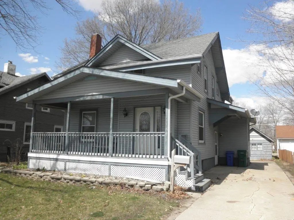 One block to Lincoln Elementary School! Inviting front covered porch enters to South living room with brick fireplace, open staircase to upstairs, beautiful natural hardwood floors, formal dining, and attractive blue siding with gray shingles. You can get immediate possession for this home. Call today!