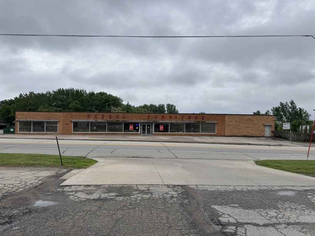 Since 1955 this is the home for Dessel's Furniture and then Dessel-Roach Furniture and Floors. Dessel-Roach owners are retiring and will be ending their business at the end of July. There is a main building with approximate square footage of 31,169 in 2 levels. Much of this area is showroom and there is alot of warehouse space in the lower level. There is also a small counter and office area along with break room and 2 private offices. There a 2 restrooms located in the lower level. There is also a 40'x 72' wood framed, metal covered shed with 4 doors on the lot. It has to concrete floor. The property is zoned Highway Commercial (C-1). Property interior sketches are not to scale. Buyer is to verify total square footage and room sizes.