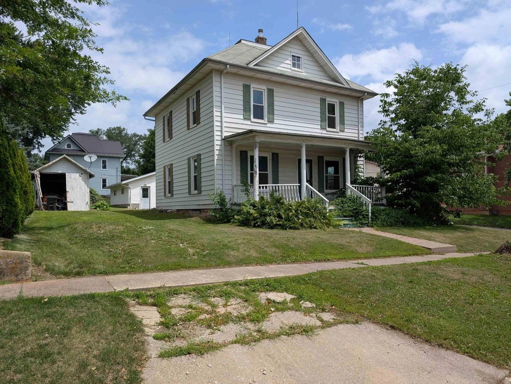 Large affordable home on a corner lot. On the main floor you will find the kitchen, dining, living room, one bedroom and a full bath. Upstairs are three additional bedrooms and a full bathroom. Behind the home is a spacious 2 car detached garage. An additional shed offers plenty of storage. Enjoy morning coffee or relaxing evenings on your front porch or partially covered back deck.