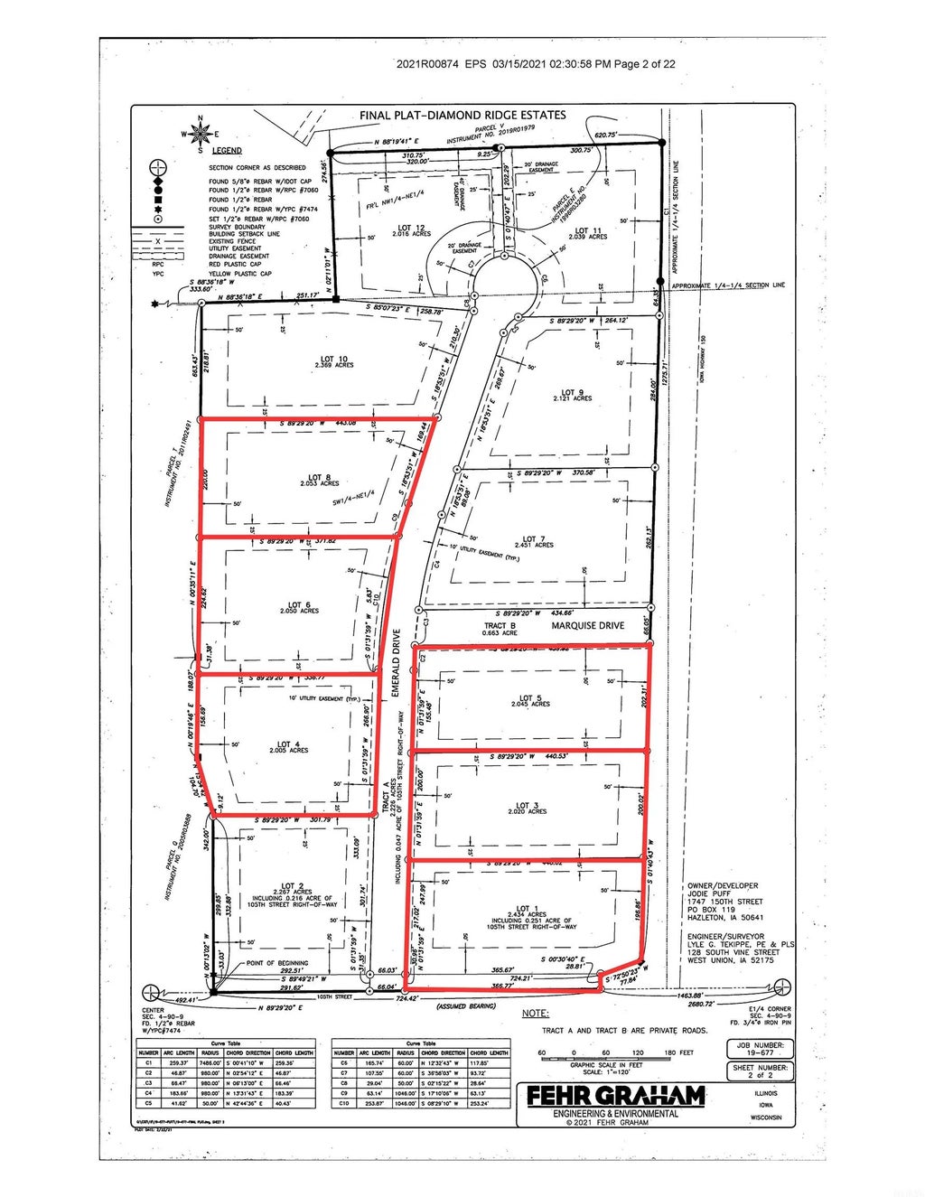 Diamond Ridge Estates offering Residential and or Multifamily Lots ranging in size from +2 acres conveniently located on Highway 150 between Oelwein and Hazleton. Rural water hookup at site, private septic required. 6 lots still remaining. Buy one or all. Barnominiums allowed on back lots.