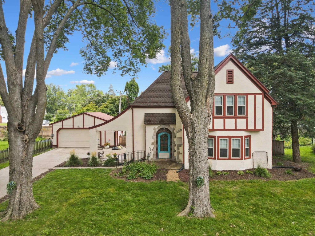 Charm and character abound in this Graceline beauty! With several amenities including a newer roof, newer, energy efficient, double-hung windows - you can enjoy this classically styled home! Relax in this Tudor-style home that has both modern updates and classic charm throughout. Step through the welcoming original arched oak front door into the entry and living room that showcases original oak flooring, oak window trim, five-inch oak baseboards, and original glass doorknobs, all of which are featured throughout the home. You will enjoy the sunny living room with its unique coved ceiling, four bay windows, and two additional large windows that illuminate the space. The original arched stone fireplace and hearth complete the cozy yet spacious living room. Pass beneath an elegant arch into the bright dining room with its expansive windows and elegant chandelier. You will fall in love with the modern addition that’s perfect for your home office and fit with a convenient bathroom with a walk-in shower. For added convenience, you will also love the walk-in pantry right off the kitchen. The galley kitchen features white cabinetry, a stainless-steel sink, and complementary appliances, along with a desirable gas stove. The original hardwood staircase leads you to the upper level, where you will find three spacious bedrooms, including the oversized primary bedroom that features four large windows that overlook the home’s beautiful canopy of hackberry trees on Graceline Boulevard. Finishing the upper level, you have a lovely full bathroom with original tiling. The home’s lower level also offers plenty of room for storage, as well as a waterproofing system. The landscaped exterior includes amenities such as three magnificent shade trees, a spacious side patio beneath a stucco archway, an oversized two-stall detached garage, and gorgeous perennial gardens! Situated on a beautiful tree-lined street that offers ample character and history, you will be amazed at this one! Don’t wait!