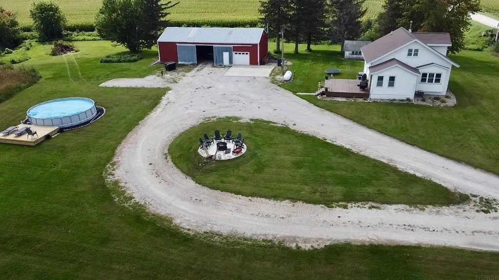 Enjoy country living on 2.84 acres just minutes from Highway 20 for easy commuting and only 20 minutes to Cedar Falls. Located in the Grundy Center School District, this 4-bedroom, 1-bath home offers an open layout with a kitchen featuring oak cabinets, an island, and a dining area that flows into the living room. The living room highlights a cozy fireplace with a modern shiplap design. Step outside to a deck overlooking the fields, an above-ground pool, and a firepit area perfect for gatherings. A 32x60 machine shed with a 1-stall insulated garage/workshop provides plenty of storage and workspace. This acreage blends comfort, functionality, and country charm, giving you the space you’ve been looking for both inside and out.