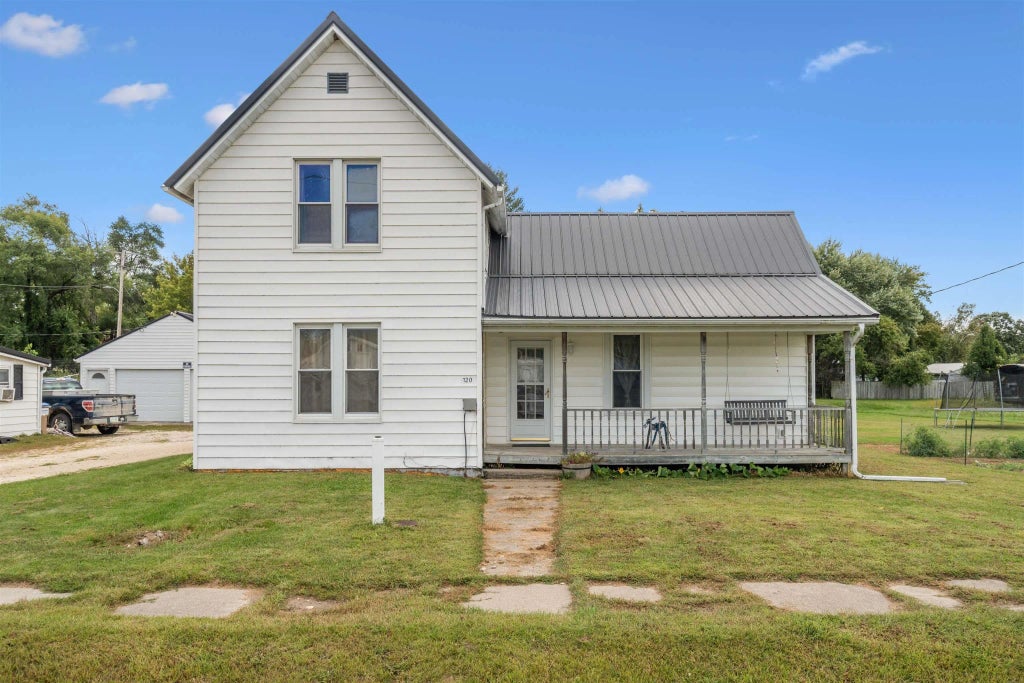 Beautifully Renovated, Move-In Ready Home with Dream Garage & Spacious Yard! Step into this attractive, well-maintained home that has been extensively renovated from the studs up on both the first and second levels. The interior has a bright, open floor plan featuring a stylish kitchen with warm oak cabinetry, seamlessly connected to the dining area and living room—perfect for entertaining or relaxing with family. Enjoy the charm of the open staircase in the dining room, complemented by updated woodwork and interior doors throughout. The main floor offers a convenient bedroom and laundry area, and beautifully updated bathroom. Two additional bedrooms are located in the upper level. Outside, you'll love the large backyard with a deck ideal for gatherings or quiet evenings. The impressive 4-car garage is a dream for hobbyists or those needing extra storage, and there’s even a small outbuilding for added versatility. Major updates include a newer metal roof, updated furnace, central air, plumbing, electrical, and much more. This is truly a move-in ready home offering modern comforts and timeless charm.