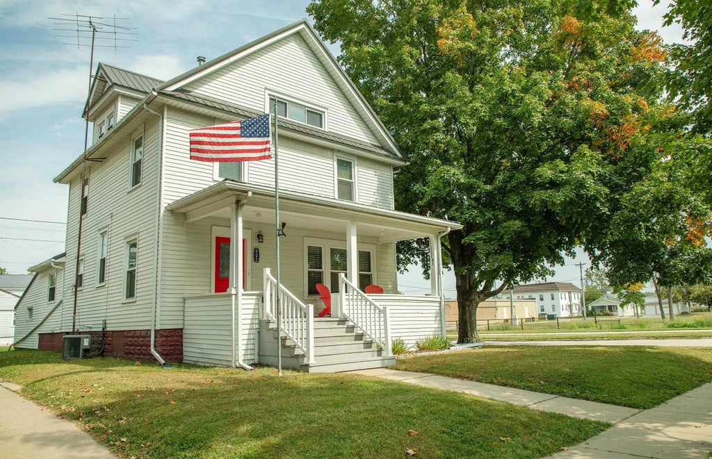 This character filled 3 bedroom two bath home has a wonderful location close to numerous businesses and easy access to anything you may need. The front porch is a great place to sit and enjoy your morning coffee and contemplate life. The front door welcomes you into a large living room with great fireplace to enjoy during those cool fall evenings. The living room opens to large dining with a great built in that transitions right into a nice sized kitchen with a great walk in pantry. The main level is rounded out by a laundry room, and full bath. The lower level is currently used as a workshop and storage. The upstairs has 3 large bedrooms and an updated full bath, the walk up attic has potential for additional living space or storage. The home has undergone extensive remodeling recently including the kitchen, 2 baths, electrical, windows, fireplace, steel roof, and driveway.