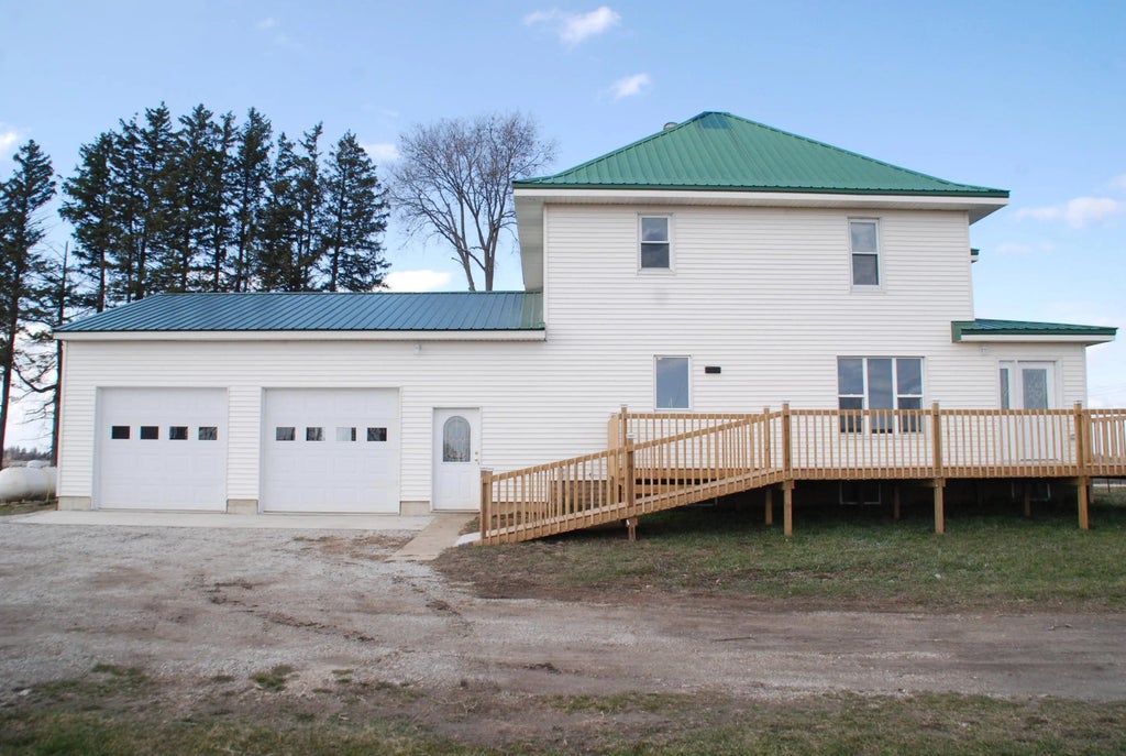 This acreage boasts almost 6 acres with a completely remodeled 2 story home. Updates include a new kitchen with quartz counters, new floors, windows, plumbing, electrical, bathrooms, furnace, AC, hot water heater, deck, and septic system. The main floor includes open kitchen, dining and living room, laundry room, bathroom, enclosed porch and office or bedroom. Upstairs there are 4 bedrooms and a bathroom. Walk-up to attic. Attached oversized 2 car garage and a large wood deck on the front of the house. There are 3 other buildings, a storage building, and two large outbuildings. The property would work great for horses or other hobby farming. Or work from home with high speed fiber.